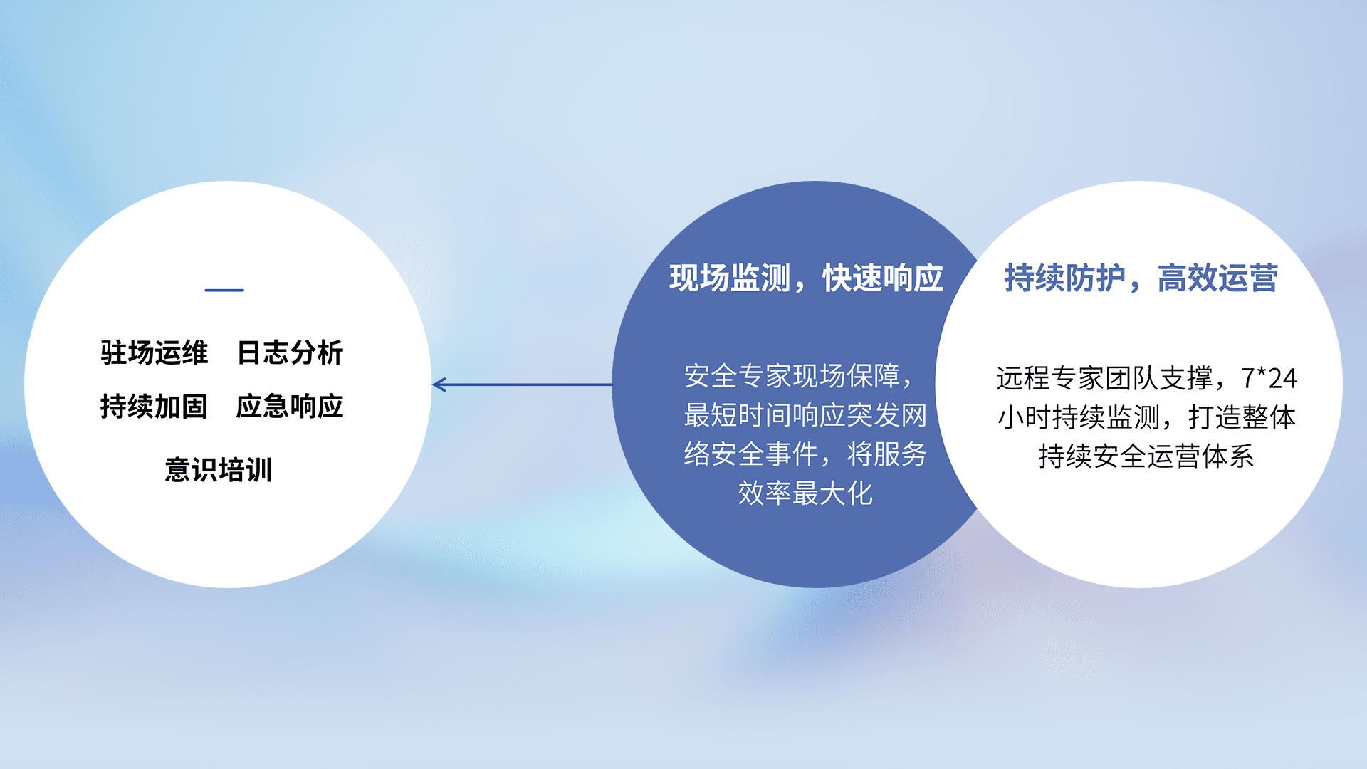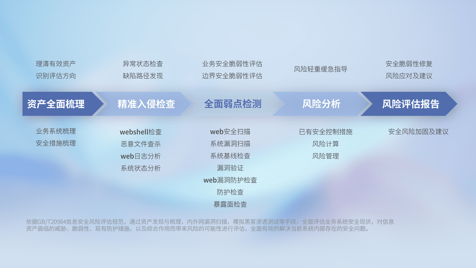 针对客户行业特性,,,,以专业的安全服务+多厂商联合解决方案提供专属的一站式安全管理服务,,帮助客户全面感知网络空间威胁,,,,基于识别、、、、检测、、分析、、、、防护、、监测、、响应的服务理论模型,,,,从方案咨询、、集成交付、、评估验证、、、优化加固、、、运维运营,,致力于为客户提供完整的闭环管理式安全服务。。。。以实战经验为客户打造高抵御风险的安全体系,,,,帮助客户发现威胁、、、对抗威胁、、处置威胁,,,不断积累安全对抗能力,,,持续保障数字化安全。。。。